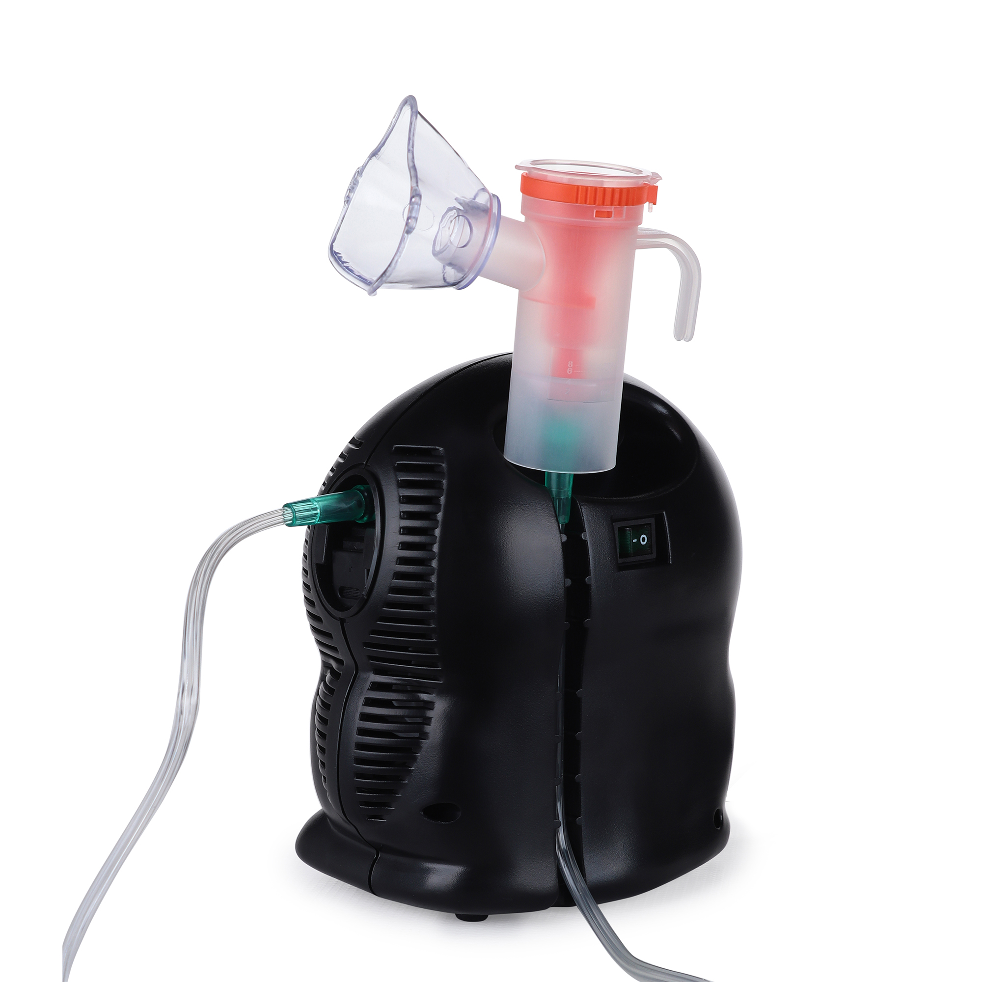 Регулировка интенсивности воздушного потока осуществляется с помощью удобного поворотного клапана, что позволяет исключить любые дискомфортные ощущения во время процедуры. Небулайзер оборудован надежным креплением для емкости с лекарственным средством и мягкими резиновыми опорными ножками, которые значительно снижают уровень шума и вибрации при работе устройства. На резервуаре имеется четкая измерительная шкала для точного дозирования препаратов. Встроенный сменный воздушный фильтр на входе предотвращает попадание пылевых частиц в дыхательные пути, обеспечивая высокое качество и безопасность каждой ингаляции.