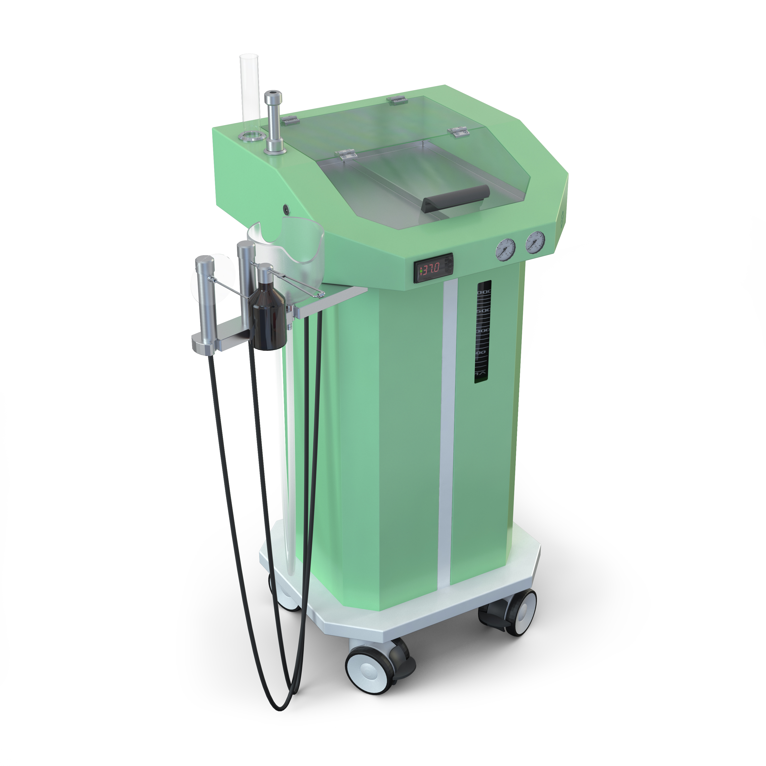 - Накопитель для секрета объемом 2,5 л позволяет проводить длительные процедуры без необходимости частой замены.
