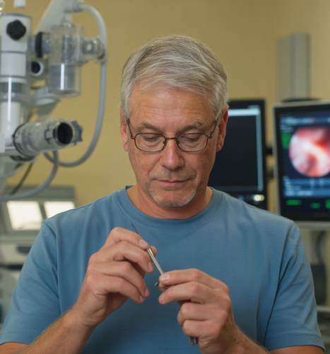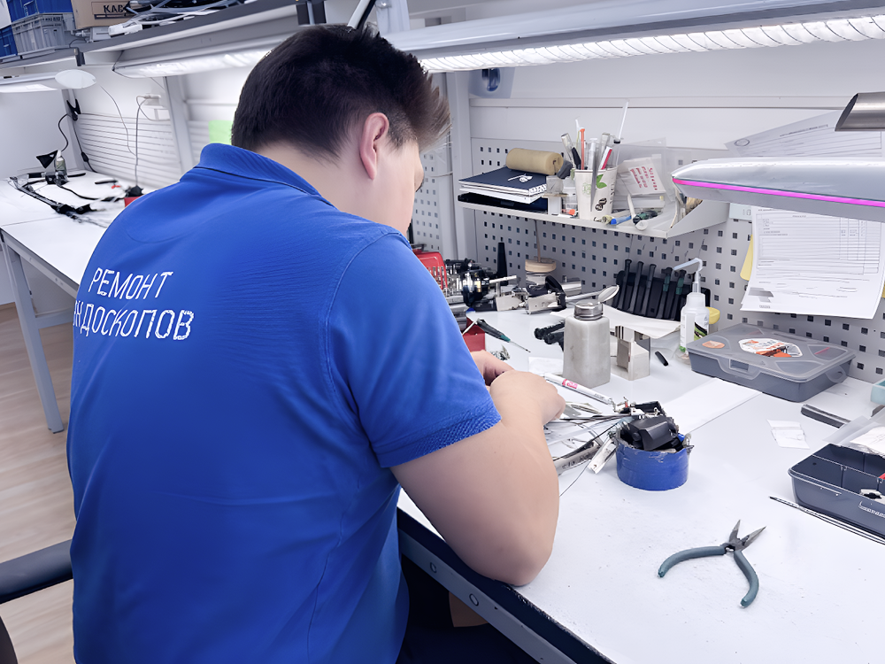 Специалист по ремонту операционных микроскопов и эндовидеосистем. Проводит восстановление оптики и настройку точных механизмов