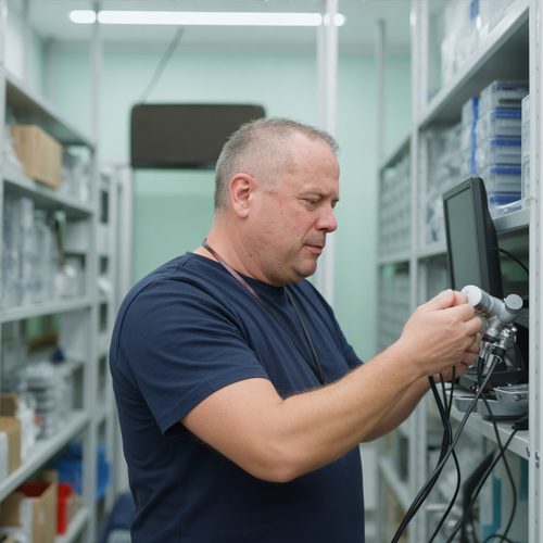 Инженер по эндоскопическому оборудованию. Выполняет подключение и настройку видеосистем, проверяет работу электронных блоков и интерфейсов оборудования