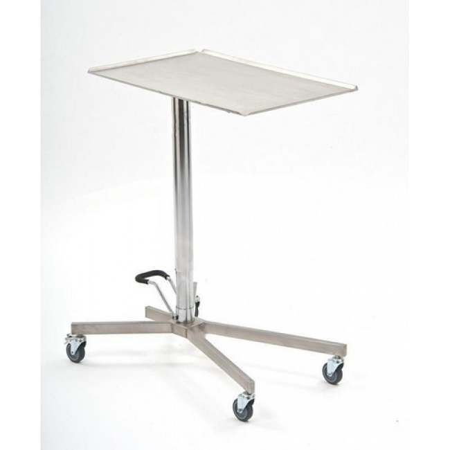 Манипуляционный столик операционной сестры, выполненный из высококачественной нержавеющей стали марки AISI 304, разработан с учетом всех требований современной операционной. Его уникальная конструкция типа «гусь» и самоориентирующиеся колеса с фиксаторами обеспечивают исключительную маневренность и стабильность в рабочем пространстве. Регулировка высоты столешницы осуществляется с помощью надежного гидропривода, что позволяет точно настроить положение для максимального удобства медицинского персонала во время проведения процедур.