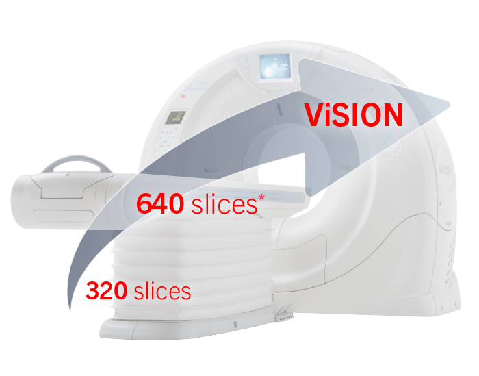 Томограф Aquilion ONE ViSION позволяет проводить сканирование области 160 мм за один оборот гентри. Эта технология исключает необходимость в спиральном сканировании, которое часто приводит к зонам перекрытия и связанным с ними искажениям. В результате достигается снижение лучевой нагрузки и устранение артефактов «сшивания» изображений.