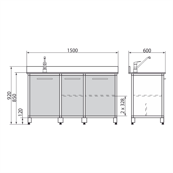- Столешница: Выполнена из HPL пластика толщиной 16 мм. Этот материал обладает исключительной устойчивостью к воздействию растворов и различных химикатов, не подвержен коррозии и окислению, а также способен выдерживать температуры до 1800°C, обеспечивая безопасность и долговечность.