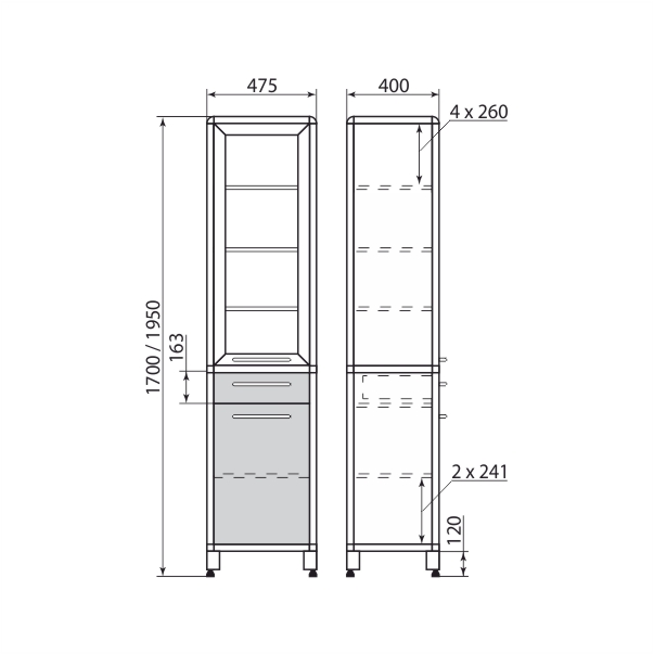 - Высота: 1700 мм или 1950 мм. Обратите внимание, что модели высотой 1700 мм отличаются количеством полок.