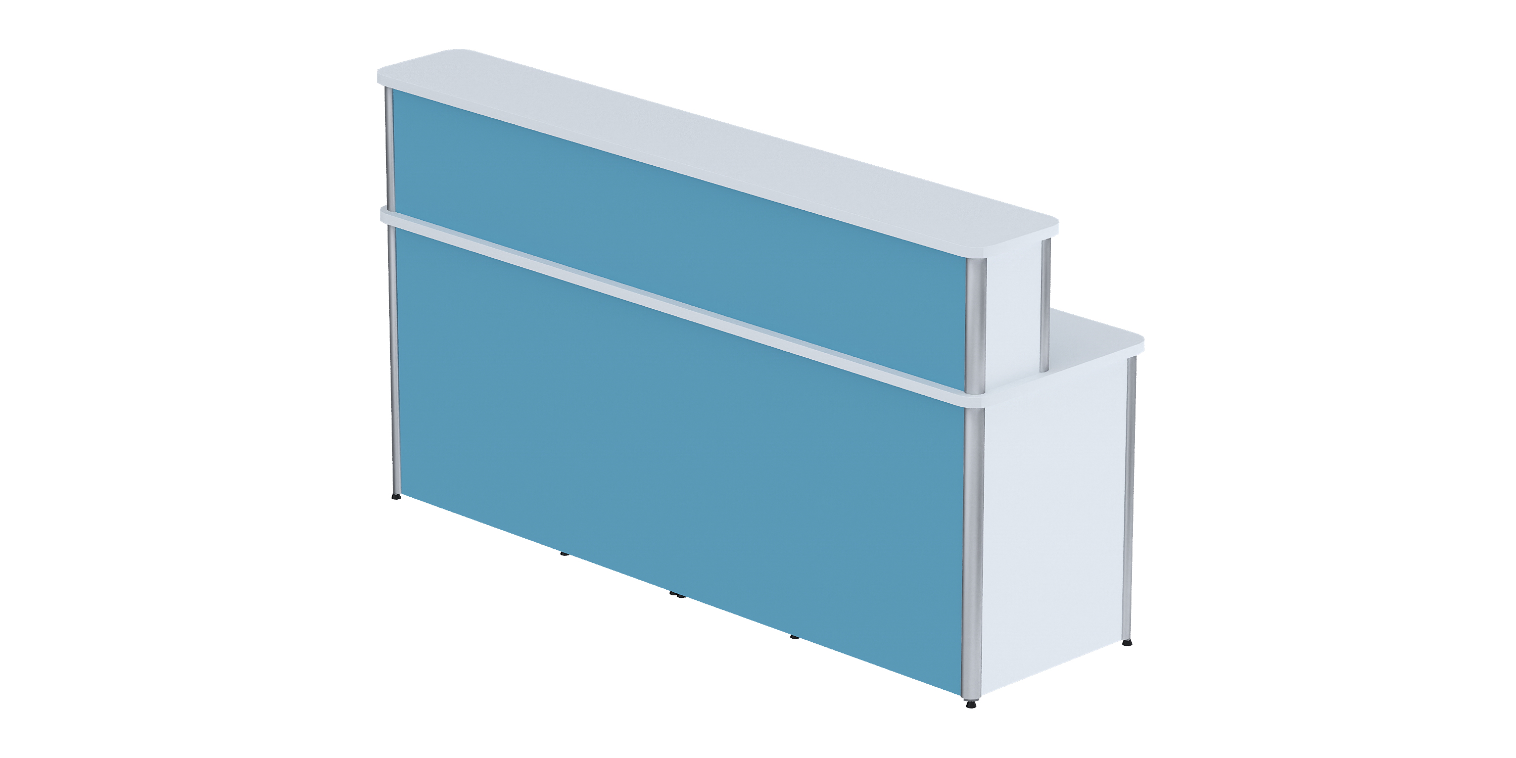 Основой конструкции является вертикальный несущий алюминиевый профиль, дополненный панелями из ЛДСП. Особая инженерная мысль воплощена в колесных опорах, расположенных сзади, что позволяет легко перемещать стол в пределах помещения, обеспечивая максимальную гибкость в организации рабочего пространства.