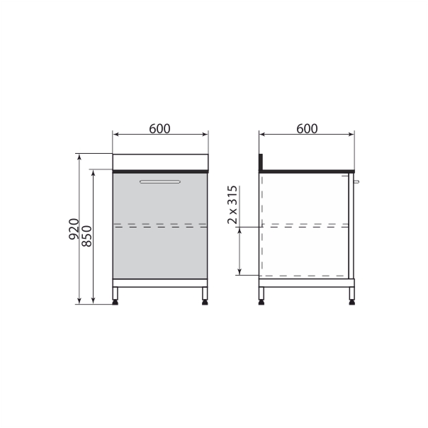 - Ширина: 600 мм.