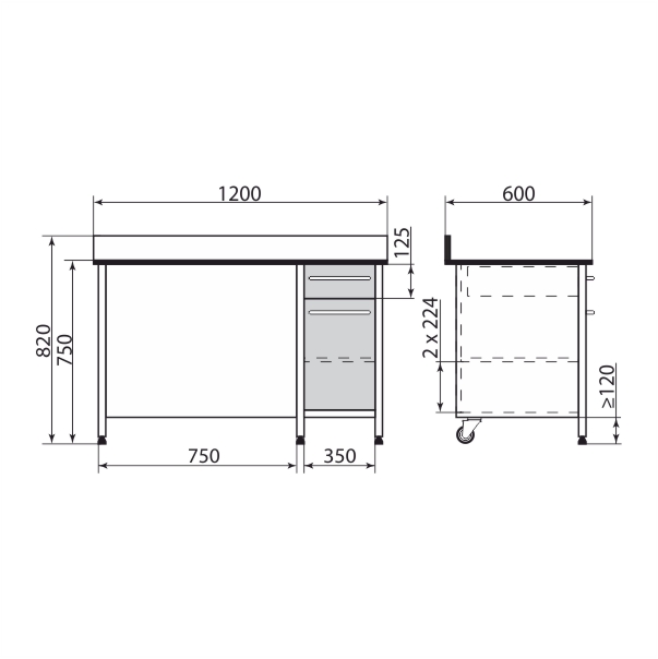 - Задние колесные опоры значительно упрощают перемещение стола в пределах помещения, минимизируя физические усилия.