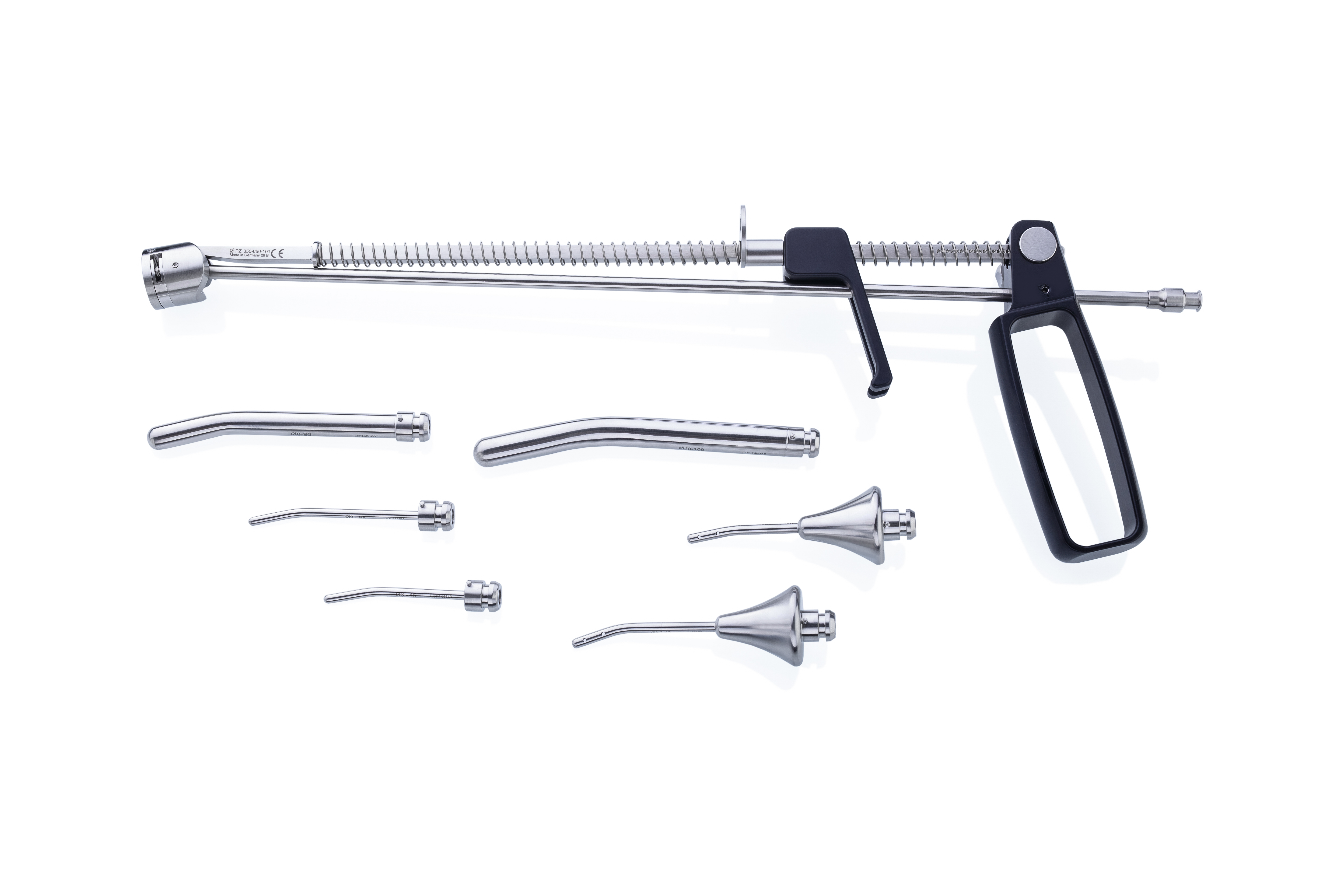 В комплекте с манипулятором поставляются сменные насадки различных форм и размеров, что позволяет адаптировать инструмент под конкретные клинические задачи: