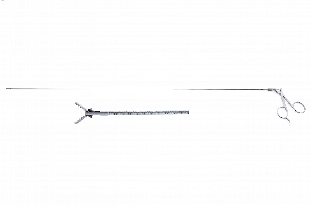 Конструкция инструмента продумана до мелочей: модульное исполнение включает в себя две основные части — гибкую тягу с рабочей частью и эргономичную рукоятку, что облегчает сборку и стерилизацию. Рабочая часть щипцов имеет оптимальный диаметр не более 5 ШР, что минимизирует инвазивность, а длина рабочей части составляет не менее 600 мм, позволяя достигать труднодоступных участков. Инструмент изготовлен из высококачественной нержавеющей стали, гарантирующей долговечность и устойчивость к коррозии.