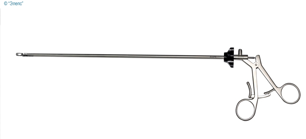 Конструкция инструмента включает внутренний канал, что обеспечивает дополнительную функциональность и удобство в использовании. Диаметр рабочей части составляет 5 мм, что позволяет осуществлять минимально инвазивные вмешательства. Длина рабочей части инструмента 320 мм, что оптимально для доступа к требуемым анатомическим структурам.