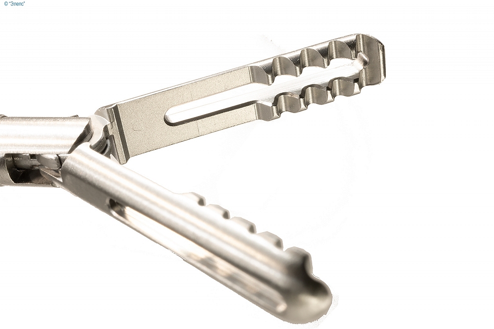 Обладая длиной тяги 420 мм, этот эластичный зажим обеспечивает оптимальный доступ и маневренность во время процедур. Габаритные размеры бранш составляют 21х4,8 мм, что гарантирует точное и надежное захватывание.