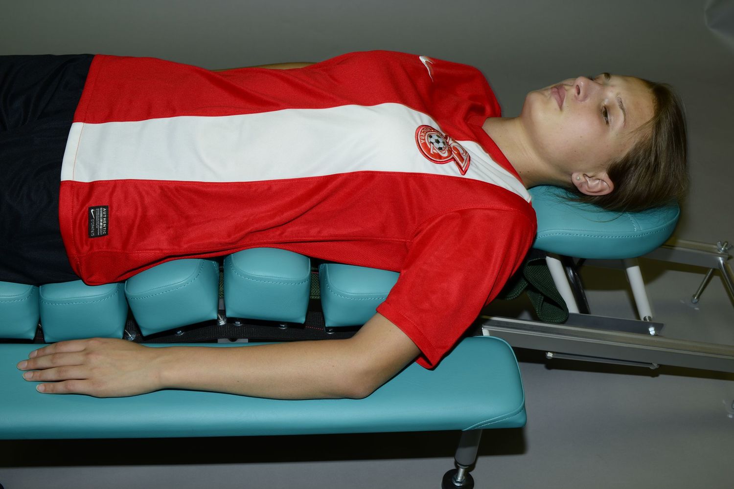 2. Система позволяет комфортно размещать пациентов ростом до 2,1 метра без необходимости предварительной настройки под ростовые характеристики. Опорная поверхность для спины сформирована из мягких, профилированных элементов, обеспечивающих максимальный комфорт во время процедуры.