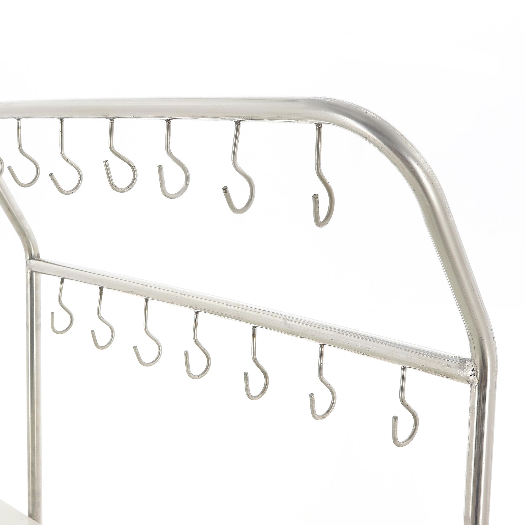 Особое внимание уделено деталям, повышающим эргономику. Инфузионная стойка имеет двухъярусную конструкцию с удобными крючками, что является неоспоримым преимуществом для проведения инфузионной терапии и размещения дополнительных приспособлений.