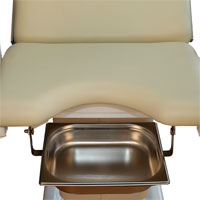- Выдвижной тазик из нержавеющей стали для сбора жидкости сохраняет горизонтальное положение независимо от угла наклона сиденья.