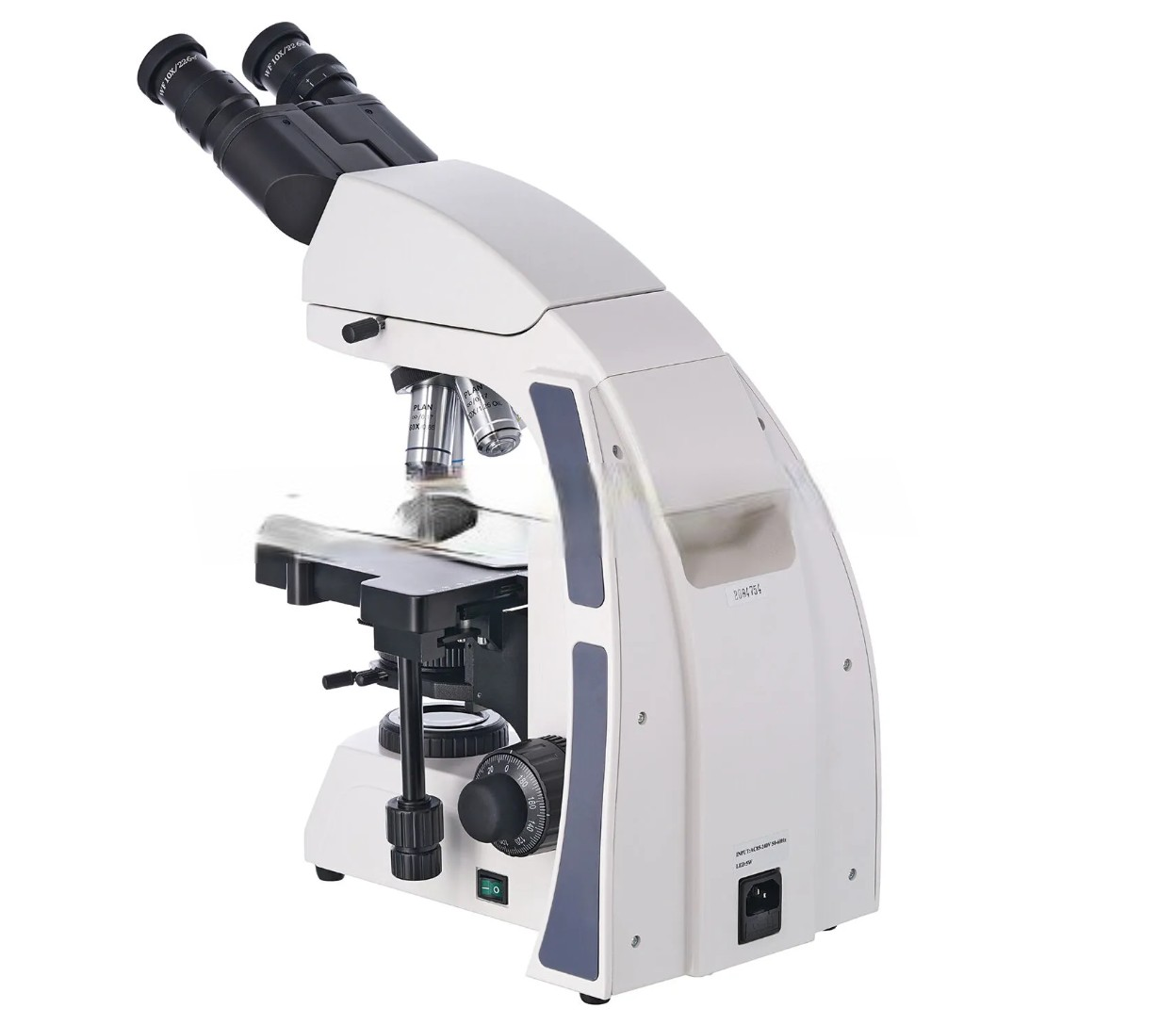 Бинокулярная насадка микроскопа имеет наклон в 30° для удобства длительной работы и способна вращаться на 360°, что упрощает совместную работу. Оптическая система включает широкопольные окуляры и планахроматические объективы, скорректированные на бесконечность, все элементы изготовлены из стекла со специальным антигрибковым покрытием. Получаемое изображение характеризуется исключительной четкостью, детализацией и контрастностью, с минимальными оптическими искажениями и абсолютно плоским полем зрения. Окуляры обеспечивают 10-кратное увеличение и диоптрийную коррекцию, что удобно для работы с протяженными образцами. В комплекте пять объективов с различным увеличением, три из которых, с наибольшей кратностью, оснащены пружинящими оправами для защиты. Для масляной иммерсии предусмотрен 100-кратный объектив. Точная и грубая фокусировка осуществляется при помощи удобно расположенных ручек.