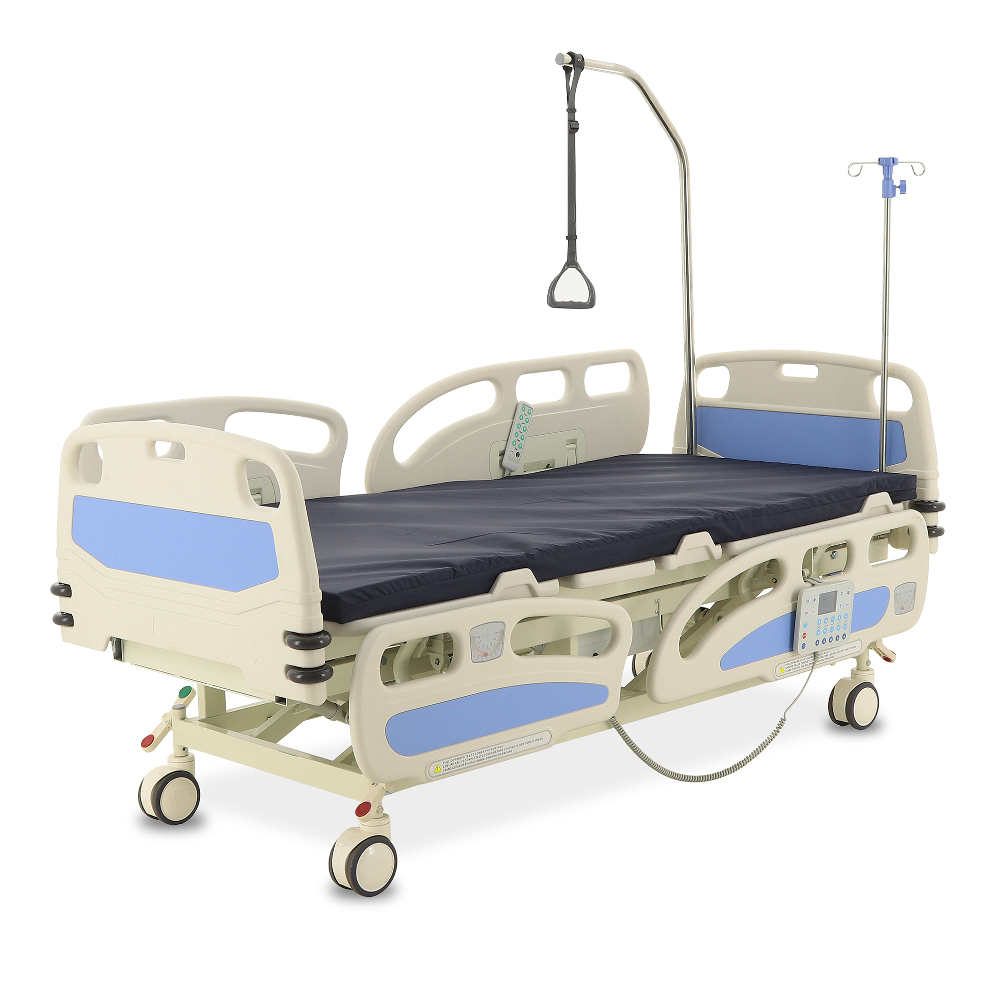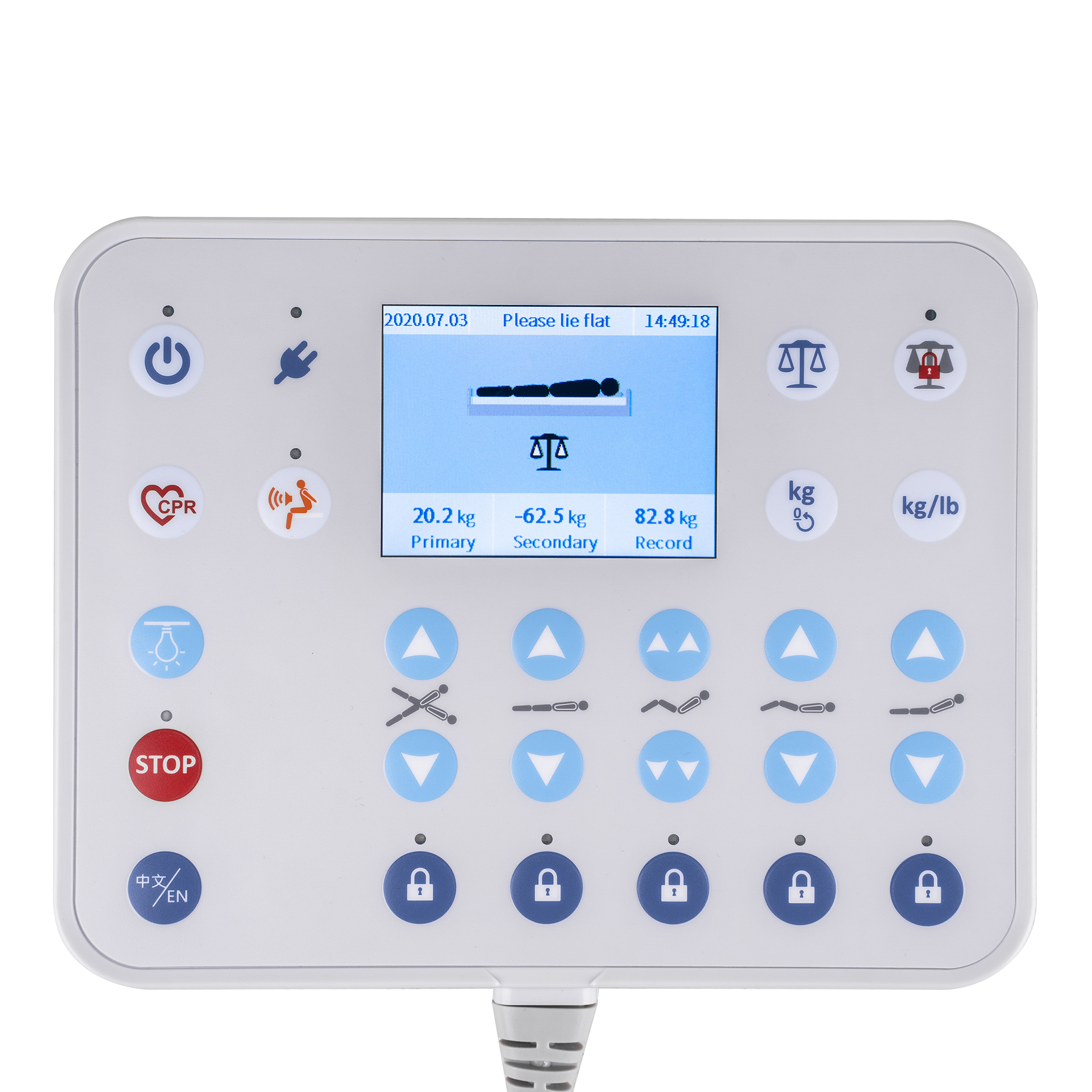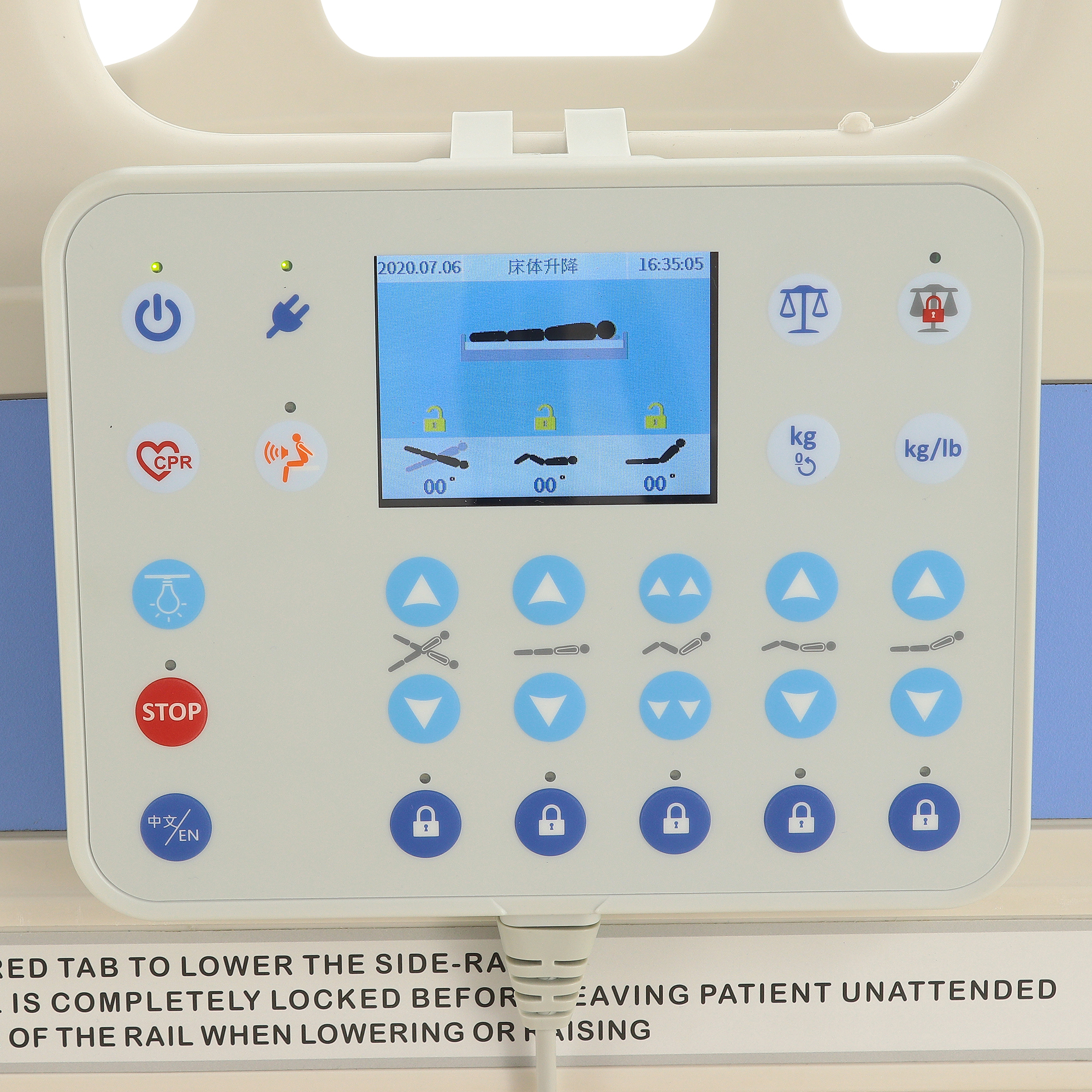 Управление осуществляется с помощью двух пультов: большой пульт с цветным LCD-дисплеем для медицинского персонала и малый пульт для самостоятельной настройки пациентом. Встроенная подсветка в боковой части конструкции обеспечивает дополнительный комфорт и безопасность в ночное время.