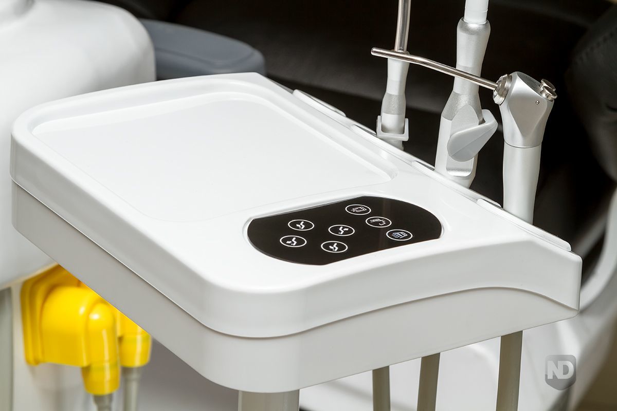 - Интеллектуальное управление: Врачебный модуль с пантографом и пневмотормозом оборудован сенсорным блоком управления креслом и плевательницей, а также большим негатоскопом, идеально подходящим для чтения ортопантомограмм.