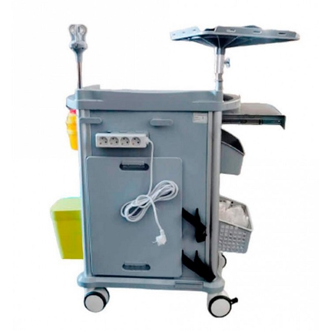 - Прочный и легкий материал: Тележка изготовлена из ABS-пластика на надежном пластиковом каркасе, обеспечивающем долговечность и простоту дезинфекции.