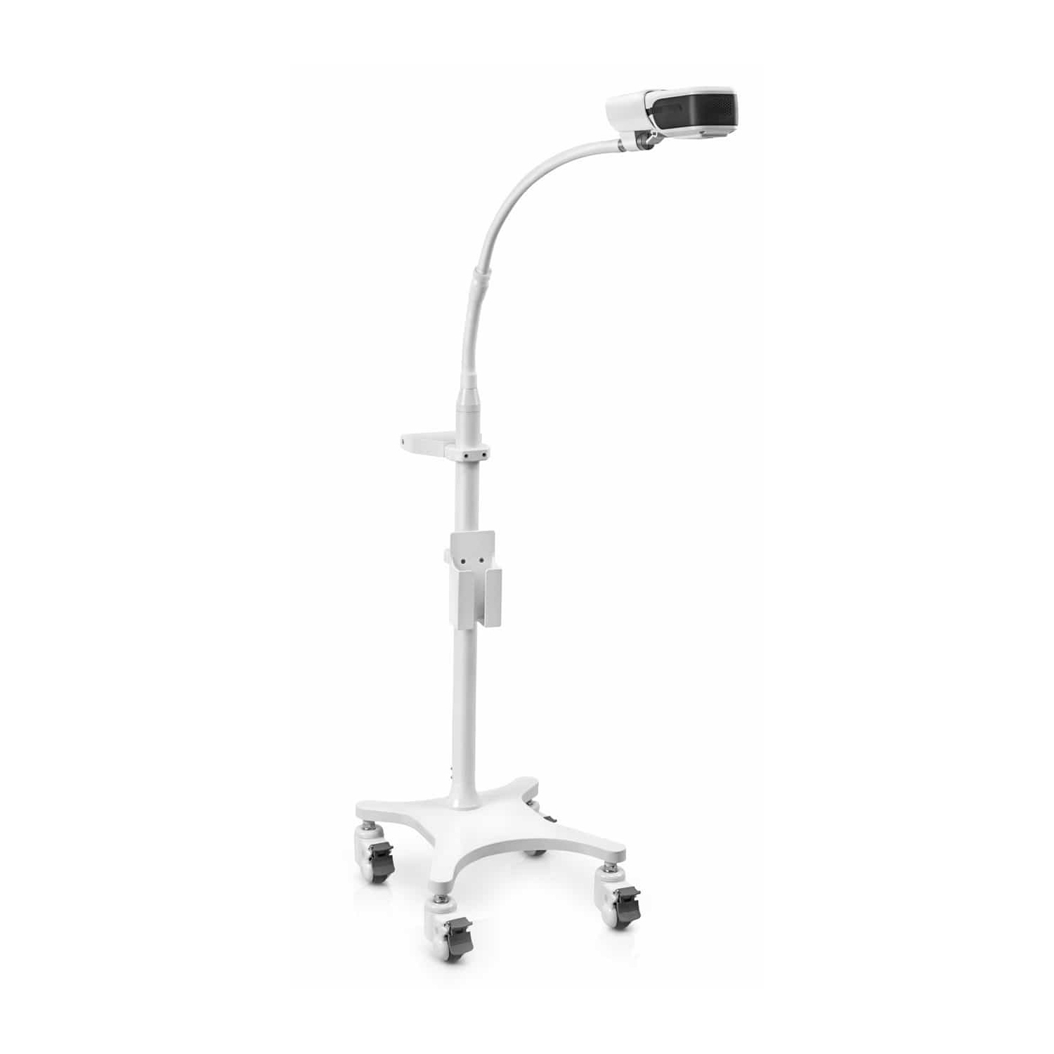 Удобная фиксация: Визуализатор вен надежно крепится на стойке с помощью зажимного механизма-кармана.