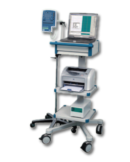 - Передвижная комплектация устанавливается на медицинскую тележку, идеальна для регистрации ЭЭГ в палатах и блоках интенсивной терапии, оснащена моноблочным компьютером с автономным питанием.