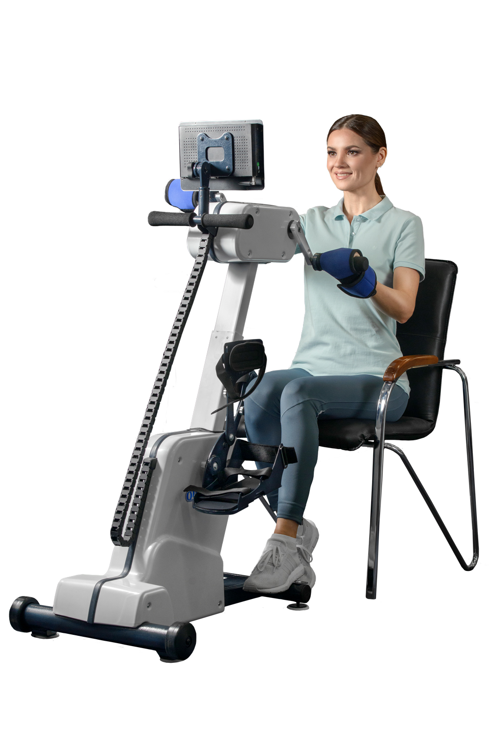 Особое внимание уделено адаптивности: тренажер идеально подходит для пациентов, использующих инвалидные кресла, обеспечивая им полноценную и комфортную терапию.