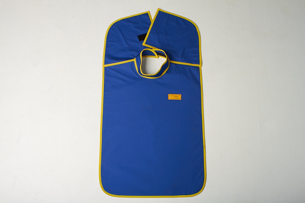 Фиксация фартука осуществляется при помощи удобной застежки «липучка», расположенной на внутренней стороне воротника-стойки и задних панелях. Это гарантирует плотное прилегание и исключает сползание фартука во время исследования, обеспечивая стабильную защиту.