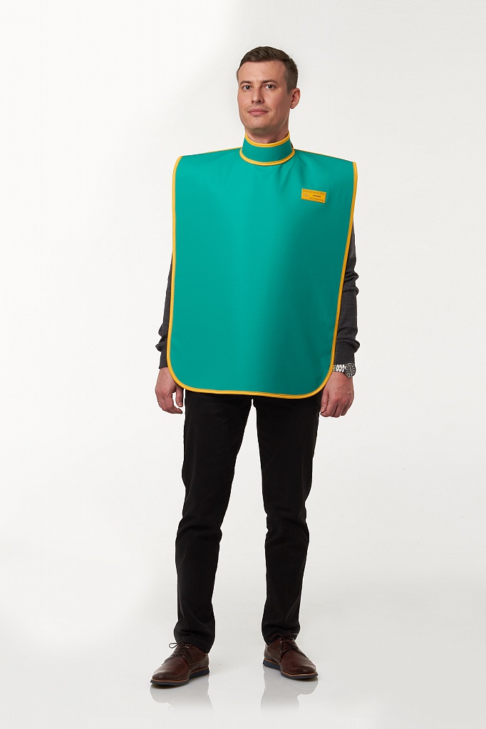 Основная задача данного фартука – надежная защита передней части тела пациента. Длина передней панели составляет 75 см, что позволяет эффективно прикрыть область таза и гонад, минимизируя лучевую нагрузку. Дополнительная стойка обеспечивает защиту шейного отдела, что особенно важно при проведении процедур, требующих пристального внимания к данной области.