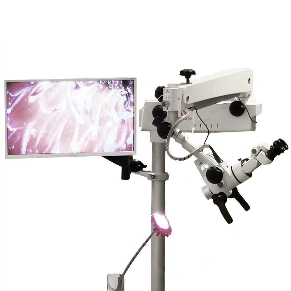 - Видеокомплекс с Full HD камерой, интегрированный в оптическую голову кольпоскопа. Предусмотрена возможность установки адаптеров для мобильных телефонов и фотоаппаратов (Nikon, Sony, Canon).