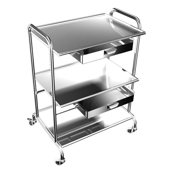 Инструментальный столик из прочной нержавеющей стали с тремя полками и двумя выдвижными ящиками – незаменимый помощник в отделениях реанимации, операционных и процедурных кабинетах. Он обеспечивает удобное размещение медикаментов и оборудования, оптимизируя рабочий процесс.