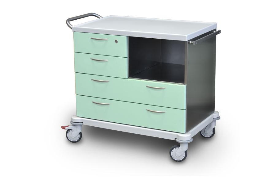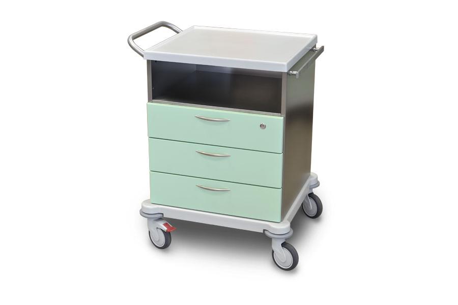Представляем столик СМ-К-А1 для анестезиолога: продуманное решение для операционных. Его удобная полка-ниша, боковая ручка и направляющая для аксессуаров значительно облегчают работу медицинского персонала. Рабочая поверхность и основание из ударопрочного ABS-пластика, с отбортовкой, исключают случайное падение инструментов. Фасады ящиков могут быть из нержавеющей стали или окрашены в любой цвет. Плавные направляющие с доводчиками и маневренные колеса с тормозом обеспечивают комфорт и безопасность.