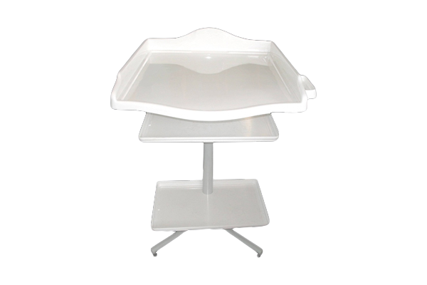 Столешница стола СП-02 выполнена из высококачественного белого пластика с акриловым покрытием, что гарантирует ее долговечность и гигиеничность, соответствующие строгим медицинским стандартам. Интегрированные бортики по периметру столешницы надежно защищают малыша от случайного падения, обеспечивая спокойствие и уверенность во время работы с новорожденными.
