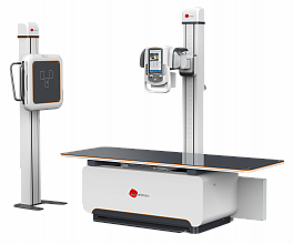 - Передовые технологии получения изображений: Аппарат использует цифровой плоскопанельный детектор размером 43x43 см, обеспечивающий высокую чувствительность и сниженную дозу облучения для пациентов. Предусмотрена возможность подключения второго детектора на дополнительной колонне для расширения диагностических возможностей.