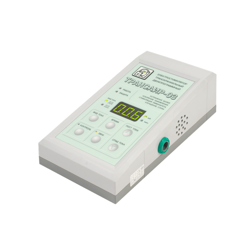 Электростимулятор транскраниальный импульсный «Трансаир-03» — это двухпрограммный портативный аппарат, разработанный для эффективной транскраниальной электростимуляции (ТЭС-терапии) как в клинических условиях, так и для домашнего использования.